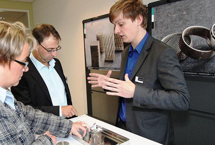 Zusätzlich war auch die Fachhochschule Aachen mit vertreten, mit der das CP in der Erprobung von Neuheiten auf dem Gebiet des Rapid Prototypings eng zusammenarbeitet. Die FH Aachen stellte hochpräzise Teile aus verschiedensten Metallen vor, die über das Lasersintern hergestellt wurden. Dabei wurden auch eigene Entwicklungen präsentiert wie die Verarbeitung von Silber.